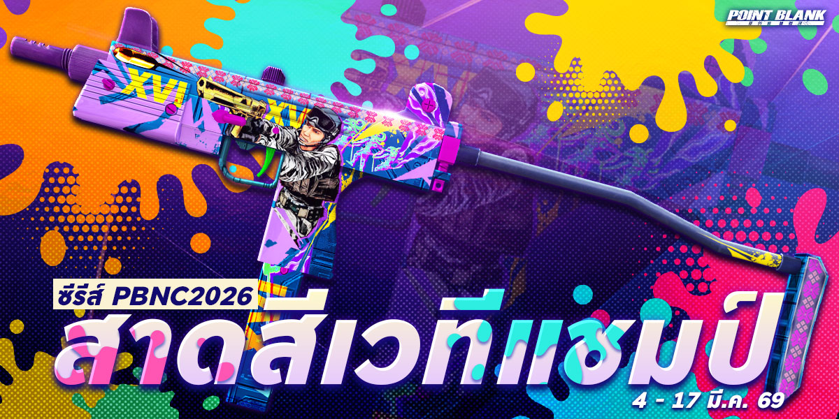 POINT BLANK WEEKLY EVENT UPDATE อัปเดตประจำวันที่ 4 มีนาคม 2569 รายละเอียดการอัปเดตประจำสัปดาห์ ไฮไลท์กิจกรรม 1. Season Pass: PBIC2026 Shaman ต้อนรบเทศกาลการแข่ง PBIC2026 พร้อมเล่นแล้ววันนี้ - 15 เมษายน ดูรายละเอียดเพิ่มเติมที่นี่ 2. กิจกรรมสะสม Token แลกไอเทมสุดพิเศษประจำงานแข่ง PBIC 2026 ได้เริ่มต้นแล้ววันนี้! อัปเดตใหม่หน้าเว็บไซต์ - ปรับปรุงการแสดงผลหน้าต่าง Game Attendance บนเว็บไซต์ให้มีความชัดเจนและสวยงามยิ่งขึ้น กิจกรรมใหม่ภายในเกม อัปเดต กิจกรรม Point Item Sale (6 - 8 มีนาคม) อัปเดต กิจกรรม แจกของรางวัลต้อนรับผู้เล่นใหม่ (4 - 10 มีนาคม) อัปเดต กิจกรรม ล็อกอินสุดสัปดาห์รับ Token PBIC2026 (6 - 8 มีนาคม) อัปเดต กิจกรรม ล็อกอินรายวันรับตั๋วโหวต PBIC2026 (4 - 24 มีนาคม) อัปเดต กิจกรรม สะสมเวลาล็อคอินสุดสัปดาห์ PBIC2026 (6 - 8 มีนาคม) กิจกรรมที่กำลังดำเนินอยู่ภายในเกม กิจกรรม สะสมเวลาเล่น PBIC 2026 (25 กุมภาพันธ์ - 24 มีนาคม) ![]() PBNC2026 XVI ซีรีส์ ระยะเวลาเปิดจำหน่ายตั้งแต่วันที่ : 4 - 17 มีนาคม (ไอเทมจะทำการเปิดจำหน่ายจนถึงระยะเวลาก่อนปิดปรับปรุงเซิร์ฟเวอร์) "พิเศษโบนัส 150% EXP & Point เมื่อใช้อาวุธหลักของซีรีส์" ![]() ![]() ![]() ==========================