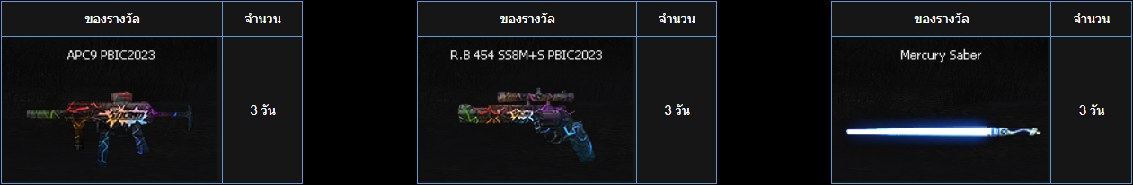 พร้อมไอเทมอาวุธพิเศษเหล่านี้ เป็นระยะเวลา 7 วันทันทีหลังสมัครบัญชี
