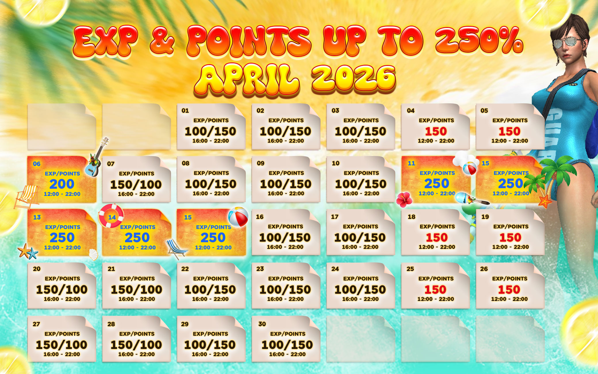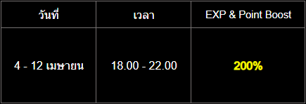 ตารางโบนัส EXP & Point ประจำเดือนเมษายน 2569