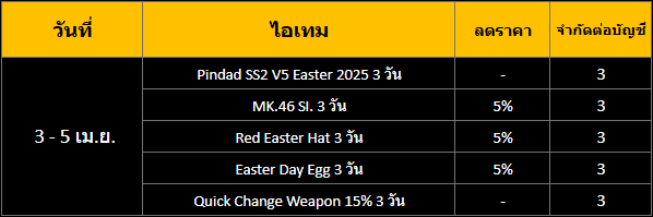 5. รายชื่อไอเทมพิเศษทั้งหมดที่สามารถซื้อได้ด้วย Point ในวันที่ 3 - 5 เมษายน 2569
