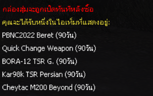 (ไอเทมจะทำการเปิดจำหน่ายจนถึงระยะเวลาก่อนปิดปรับปรุงเซิร์ฟเวอร์)