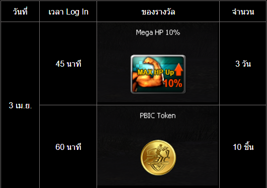 อัปเดต กิจกรรม สะสมเวลาล็อกอินสุดสัปดาห์ PBIC (3 - 5 เมษายน)