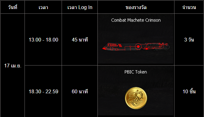 อัปเดต กิจกรรม สะสมเวลาล็อกอินสุดสัปดาห์ PBIC (17 - 19 เมษายน)