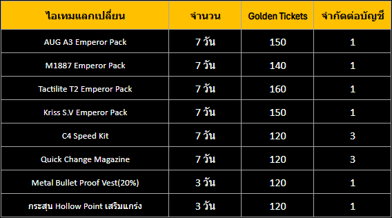 3.ไอเทมถาวรสามารถแลกเข้าไอดีที่มี Gold Ticket เท่านั้น ไม่สามารถโอนย้ายไปยังไอดีอื่นได้