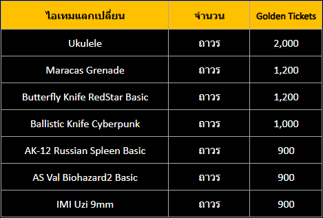 รายการแลกไอเท็ม Gold Ticket