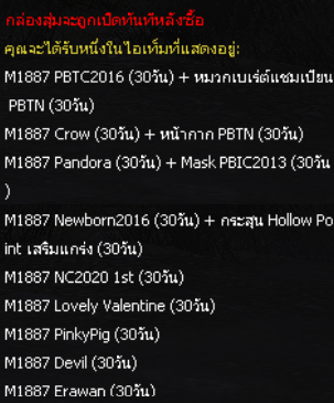 (ไอเทมจะทำการเปิดจำหน่ายจนถึงระยะเวลาก่อนปิดปรับปรุงเซิร์ฟเวอร์)