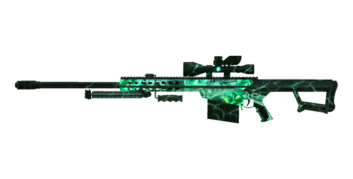 Barrett M82A1 Emerald is a content featuring emerald motif surface design, firing effect, aura, and a shiny emerald decoration embedded on the top.