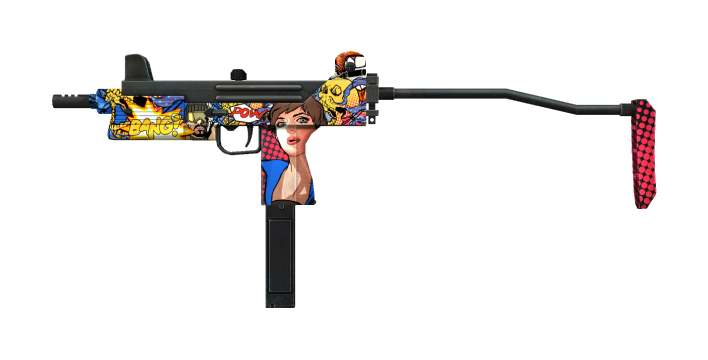 T77 Comic is a bold and colorful weapon featuring vibrant Pop Art comic designs. With iconic PB characters printed right on the gun, this piece brings extra flair to every battle.