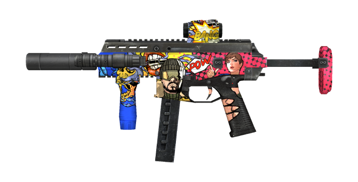 APC9 Comic is a bold and colorful weapon featuring vibrant Pop Art comic designs. With iconic PB characters printed right on the gun, this piece brings extra flair to every battle.