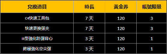 4.兌換完成後,玩家用於兌換的黃金券數量將根據兌換的永久武器數量扣除