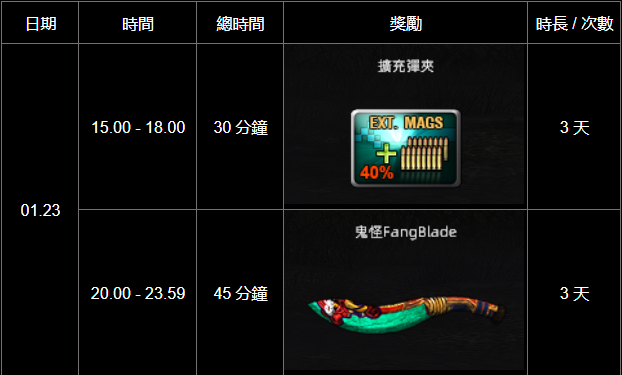 更新 週末累積在線時間活動  (2026.01.23-2026.01.25)