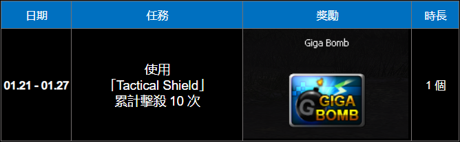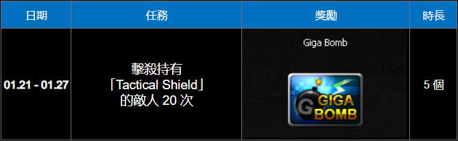 更新 Tactical Shield 特別任務 (2026.01.21-2026.01.27)