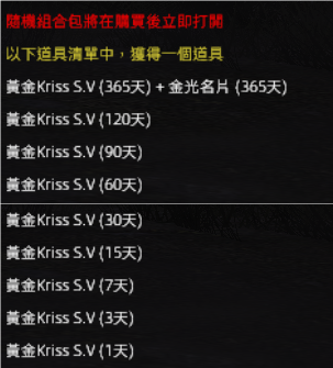 舉例:若玩家隨機獲得 30 天的道具,將同時獲得 30 個黃金券