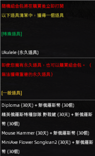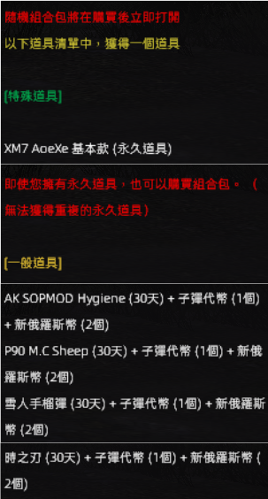 (此隨機箱不包含保底獲得永久道具之機制)