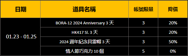 更新 特別道具限時上架(2026.01.23-01.25)
