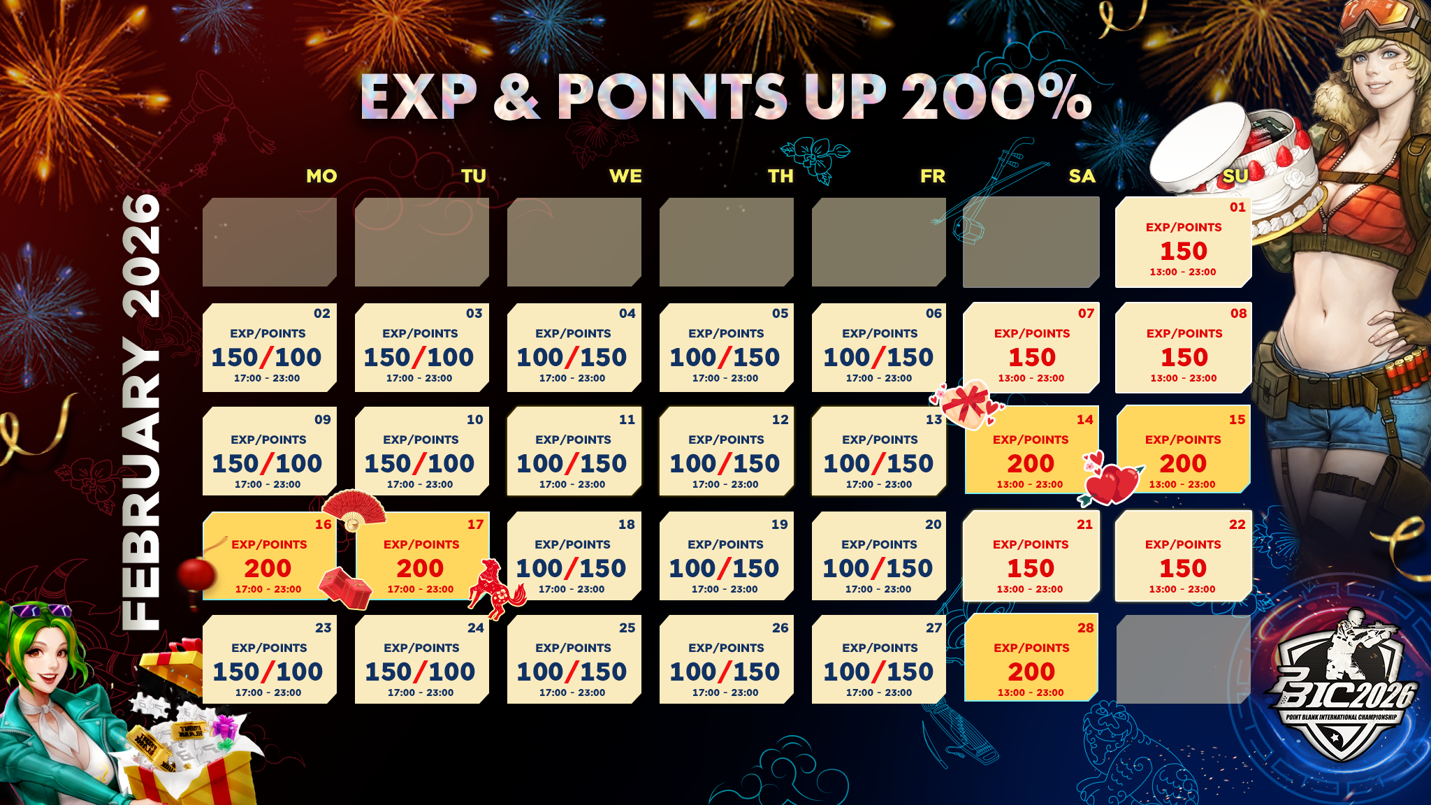 2026年2月份EXP&Point加成時程表