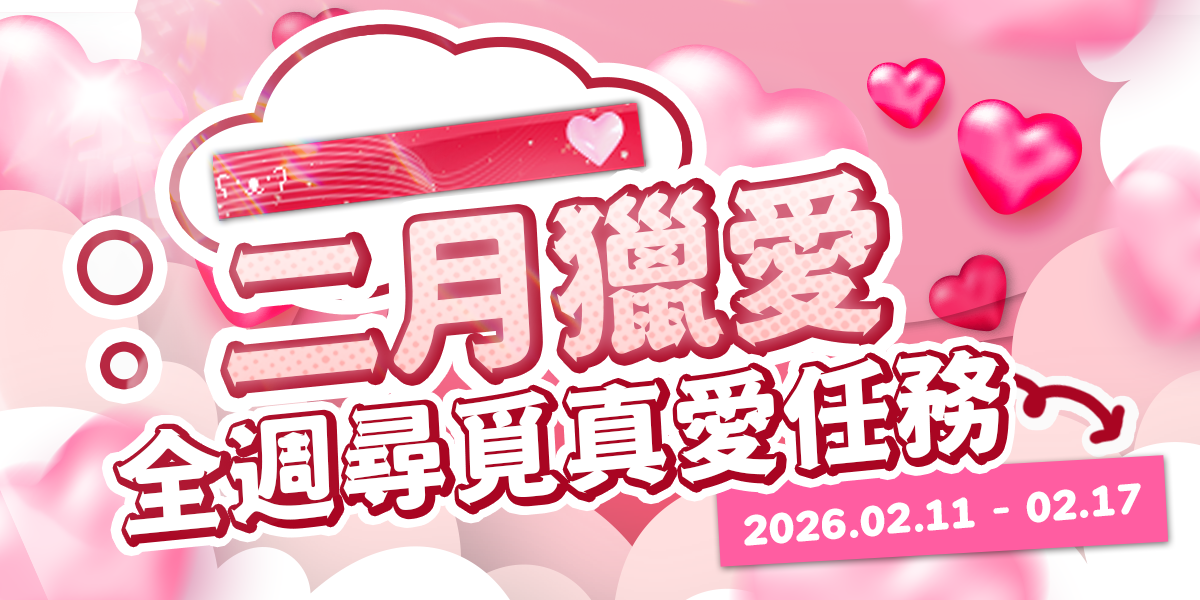 *備註:每週任務將於每週三重置。 =========================== 特別活動 任務卡:情人節! 活動時間 : 2026.02.11 - 02.17 情人節週專屬特別任務卡:完成指定任務即可獲得特殊獎勵! 盡情沉浸於情人節的慶祝盛典中! 【情人節任務卡 獎勵內容】