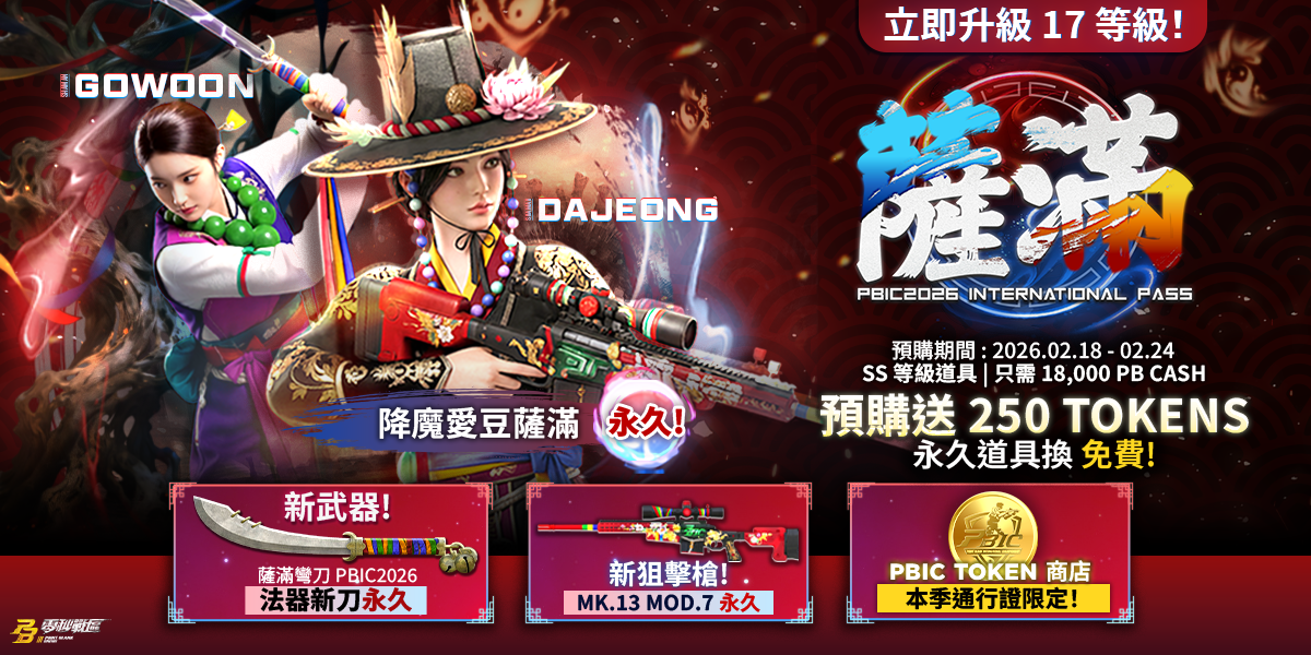 早鳥預購正式開啟! 戰鬥通行證《薩滿 PBIC2026》 預購期間:2026.02.18 - 02.24 千萬別錯過預購最新戰鬥通行證的特別機會!